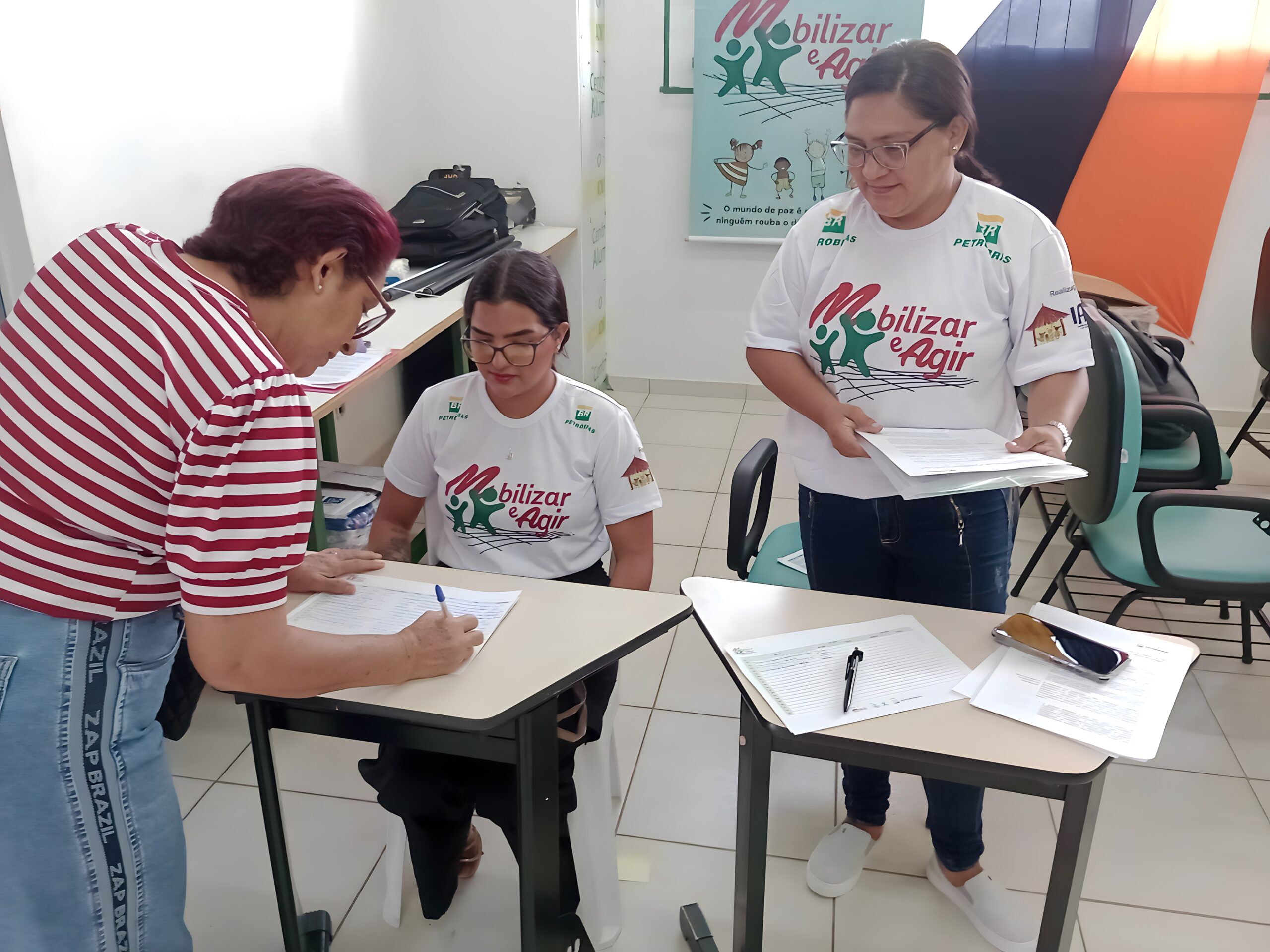 A atividade contou com a presença de Joana de Ávila Bessa e Eduardo de Almeida Pacheco Amaral, fiscal e gerente do contrato do projeto Mobilizar e Agir, respectivamente, representando a Petrobras. Ambos acompanharam de perto o desenvolvimento da oficina, reforçando o compromisso da companhia com ações que promovem o fortalecimento da rede de proteção e o investimento em iniciativas de impacto social.