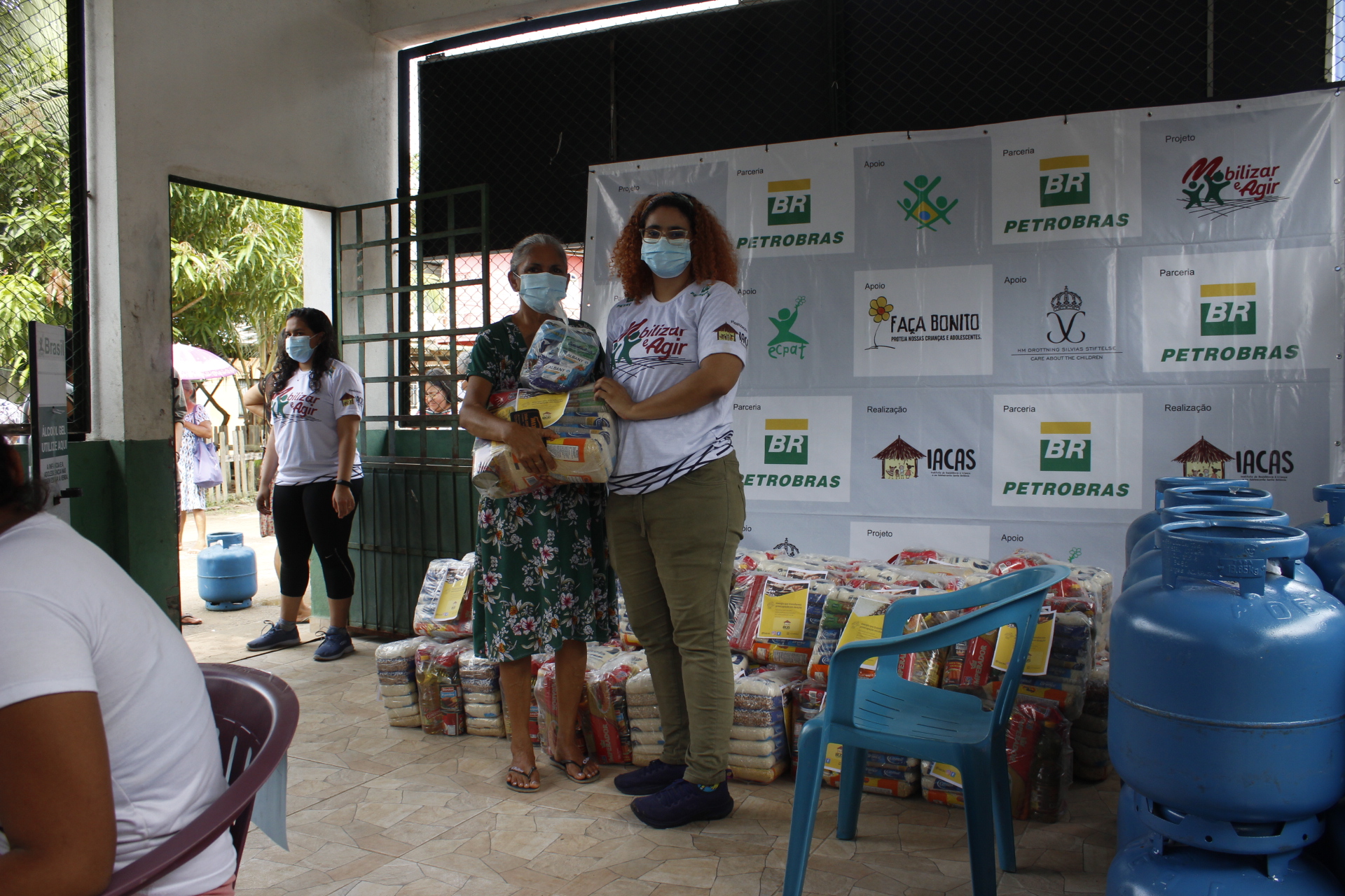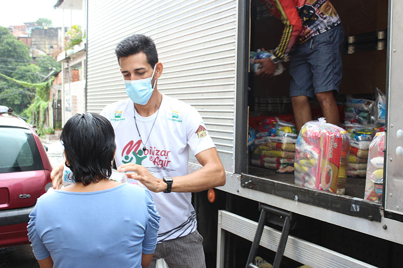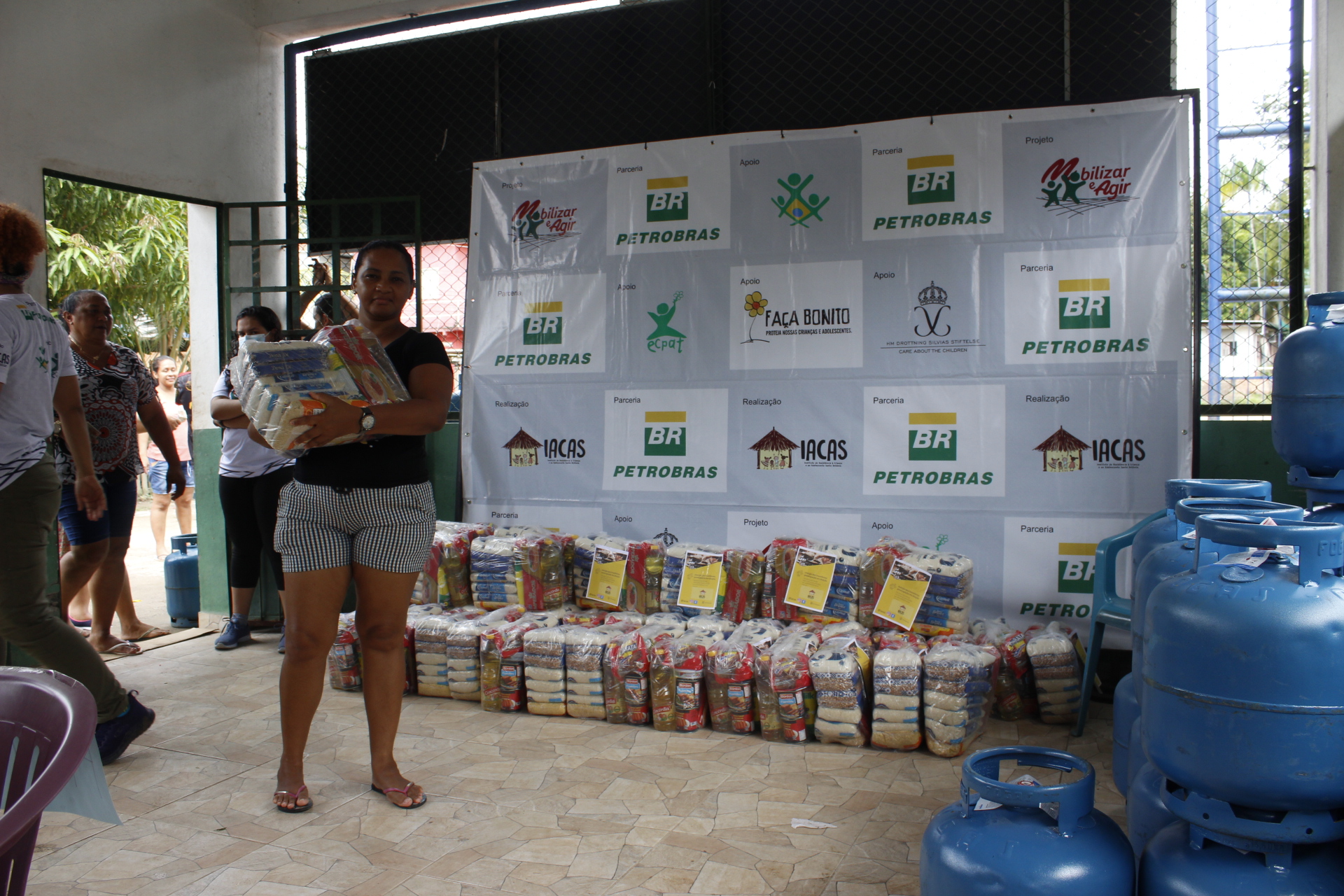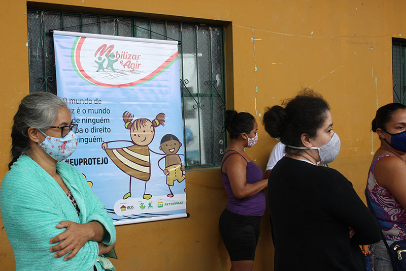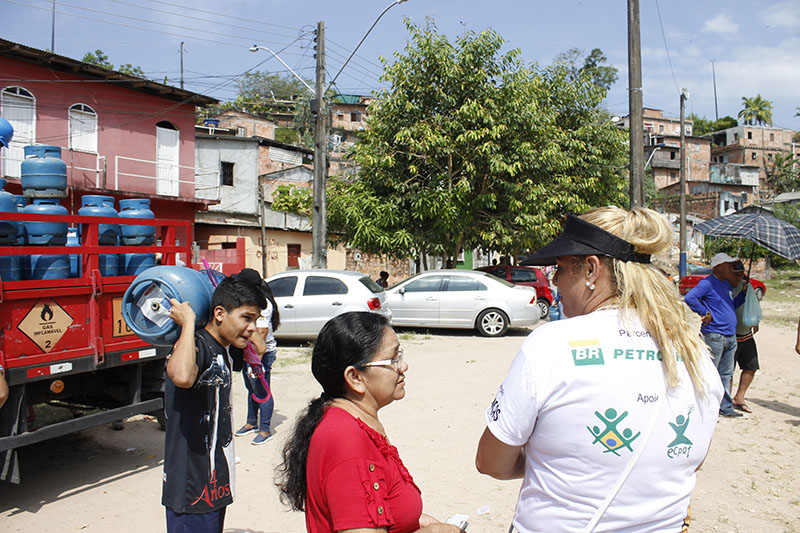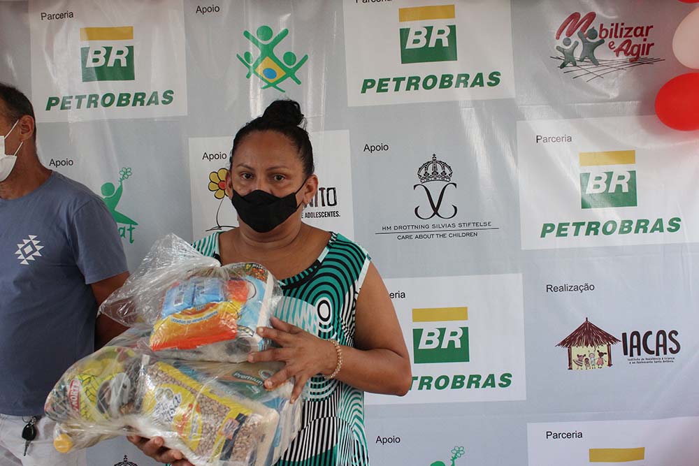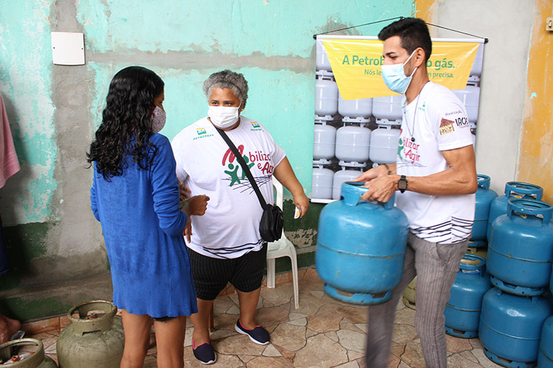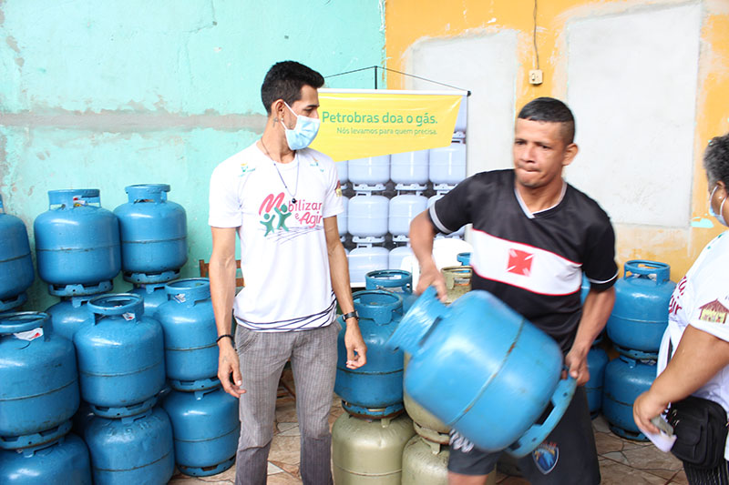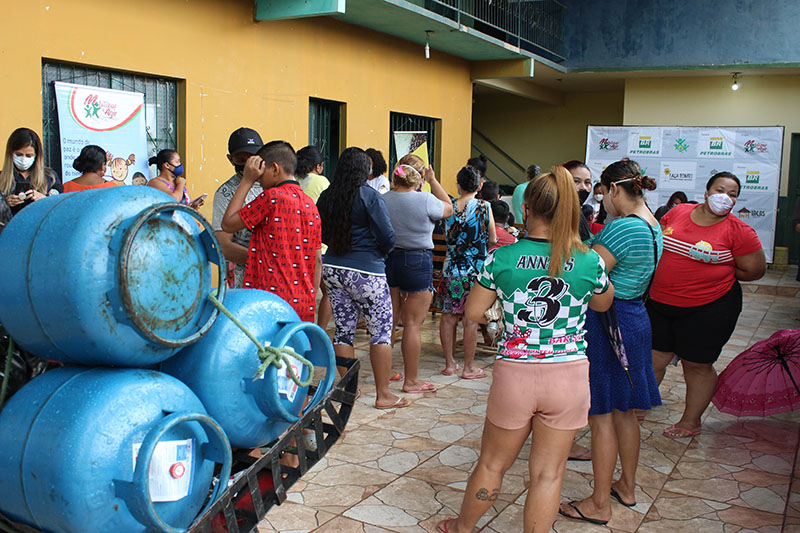 Recebimento do auxílio kit gás e cestas básicas no bairro Mauzinho e Vila da Felicidade. A ação faz parte do Projeto Mobilizar e Agir em parceria com a Petrobras.