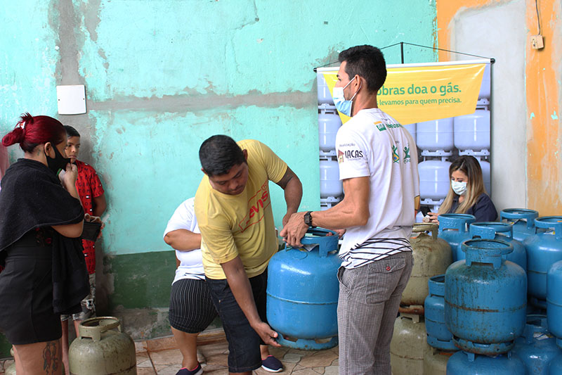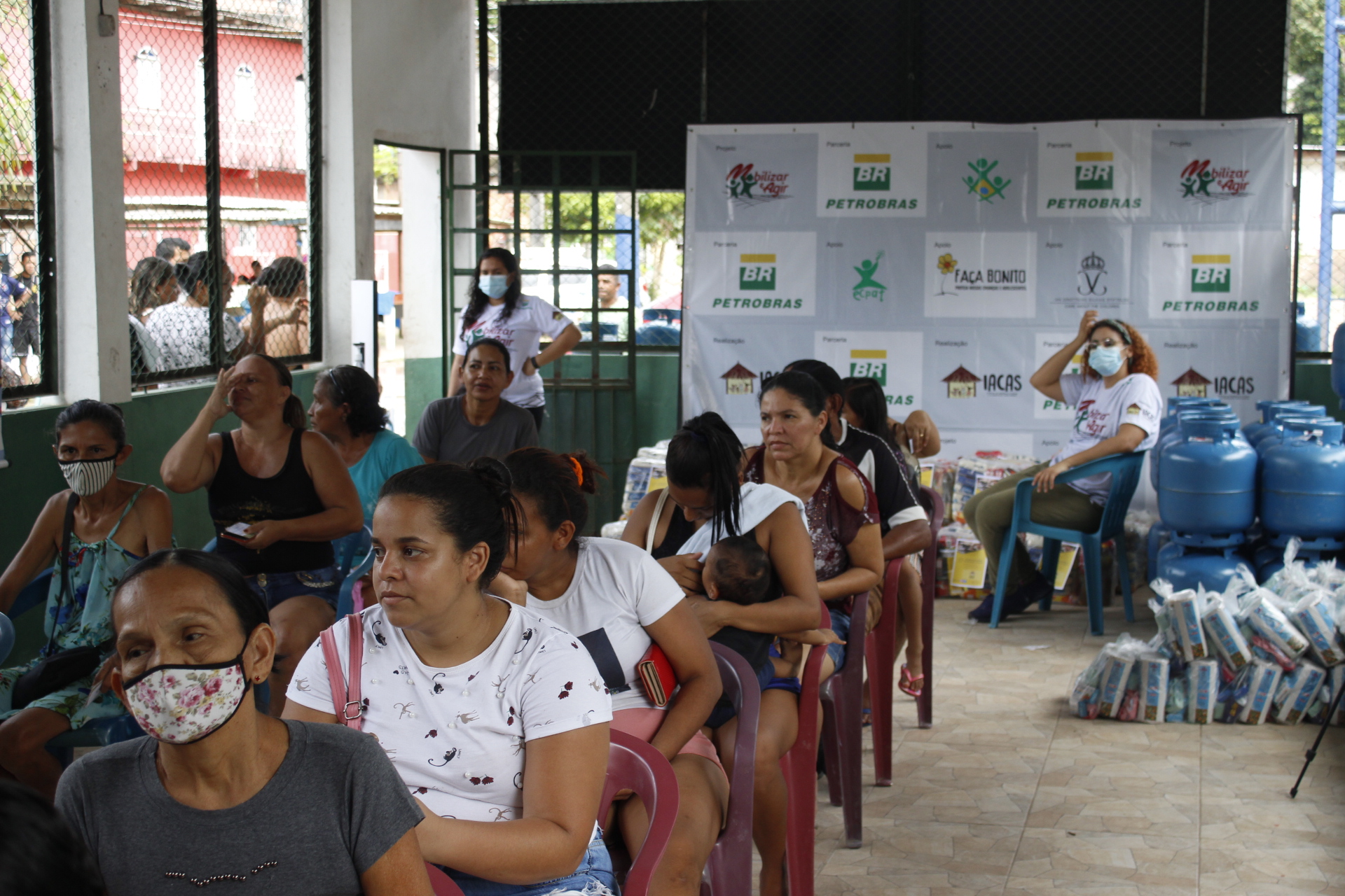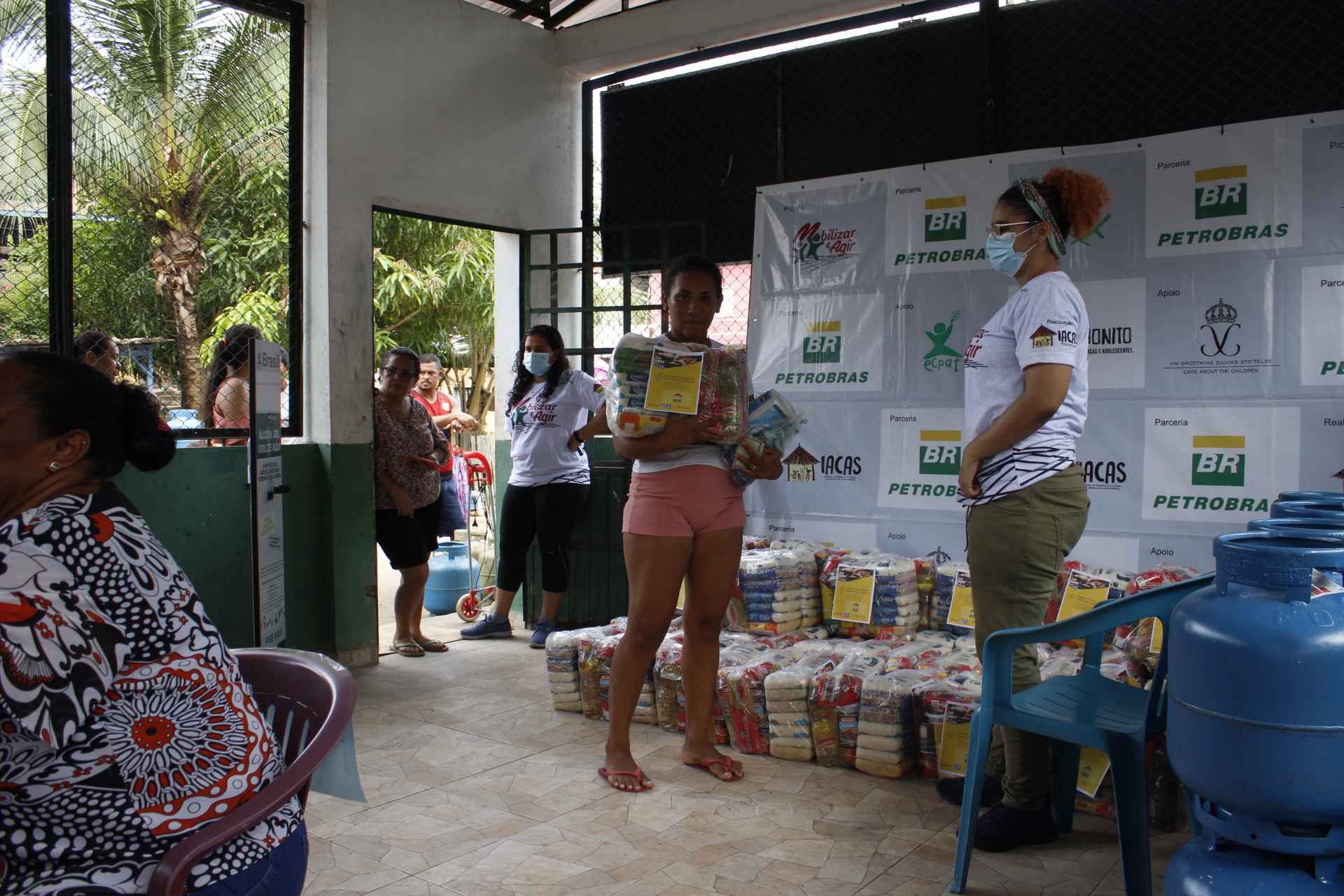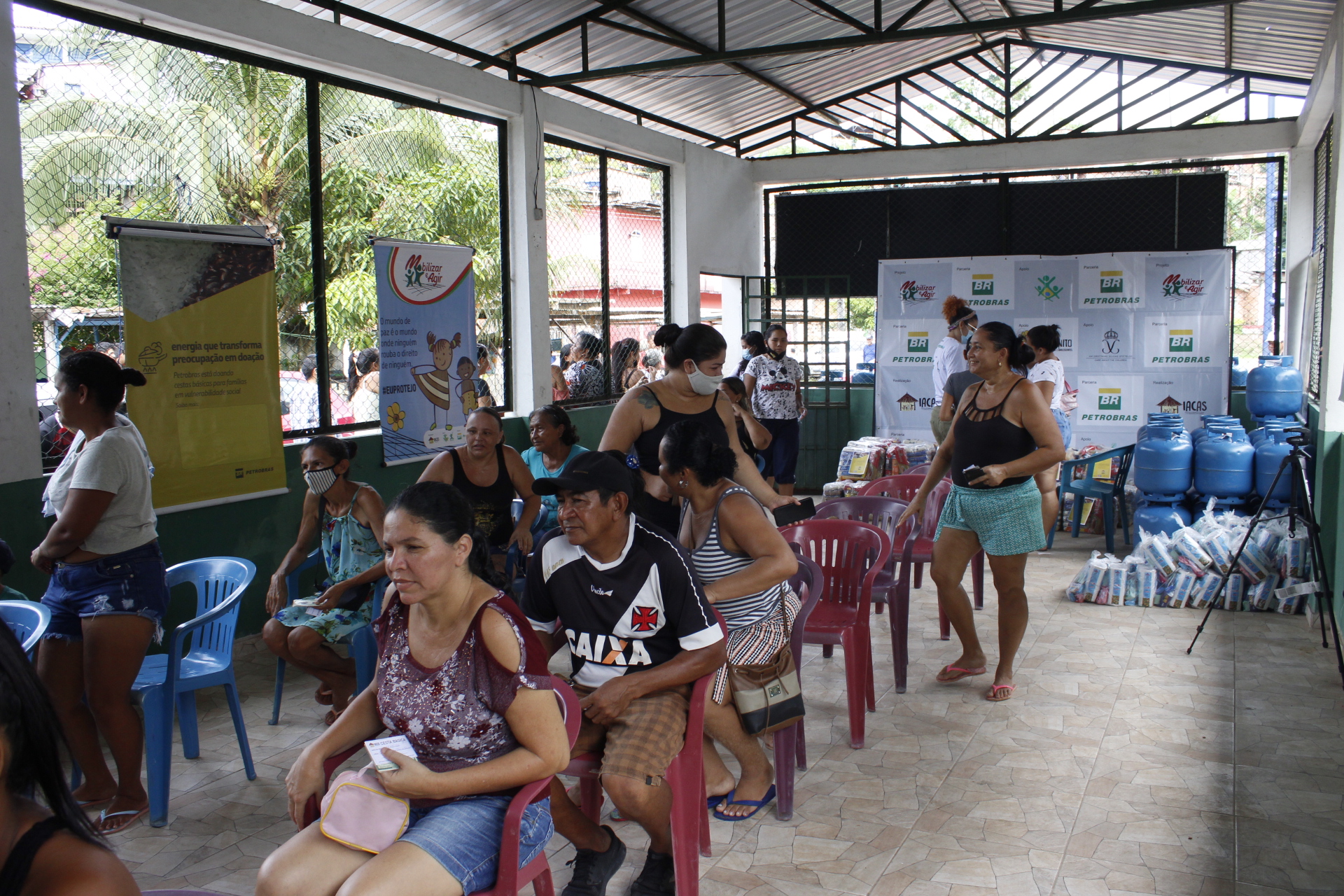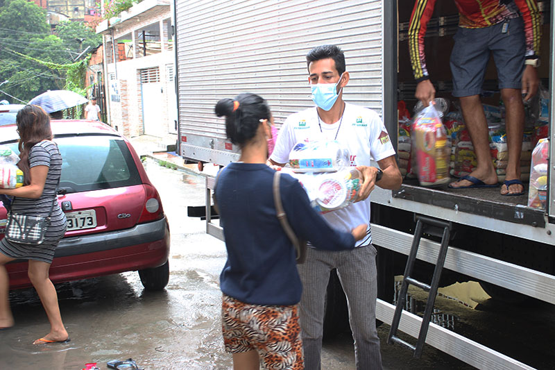 Recebimento do auxílio kit gás e cestas básicas no bairro Mauzinho e Vila da Felicidade. A ação faz parte do Projeto Mobilizar e Agir em parceria com a Petrobras.