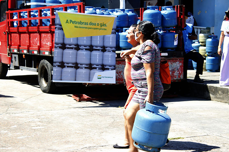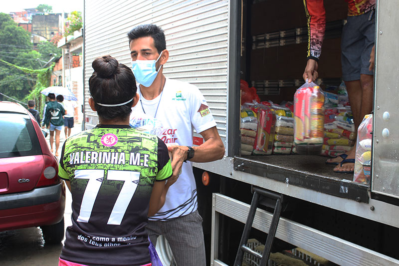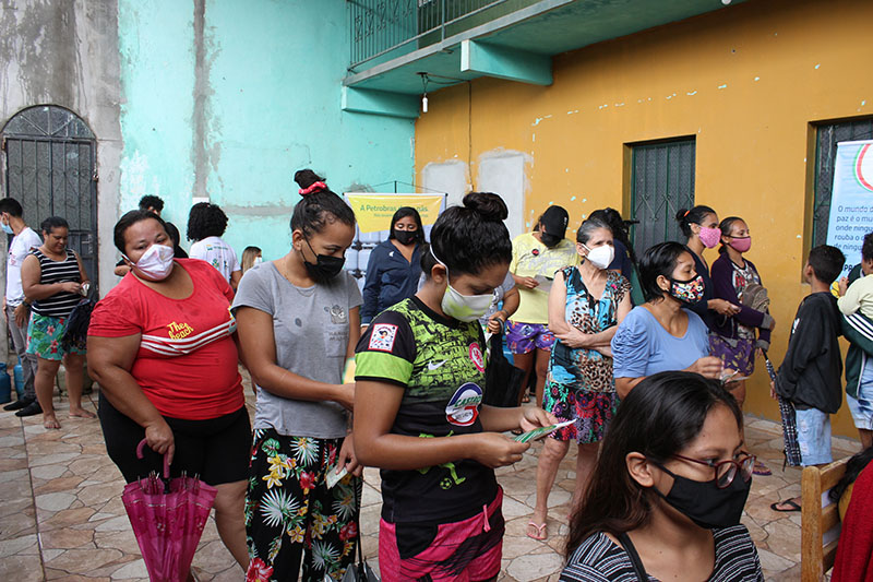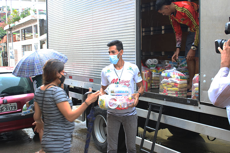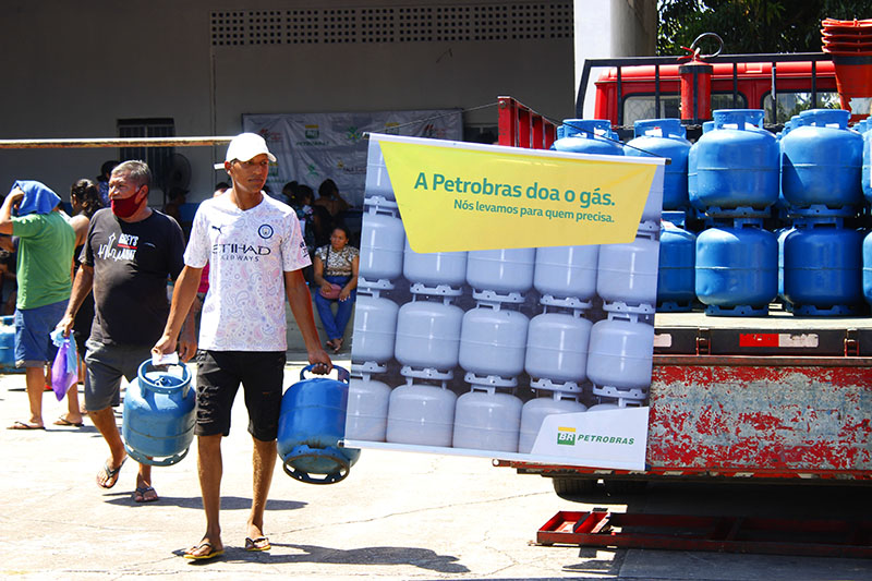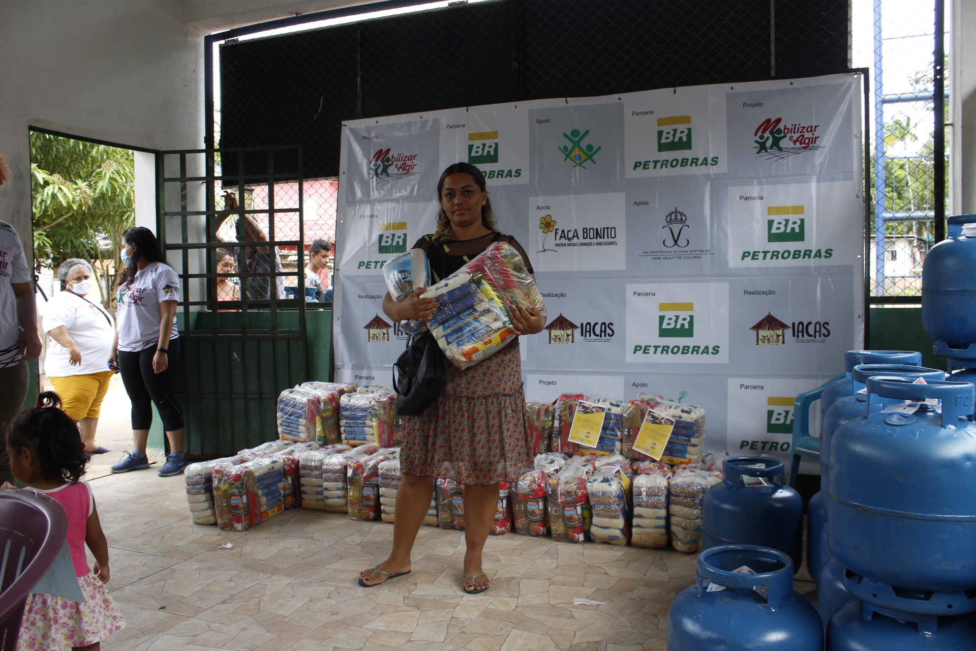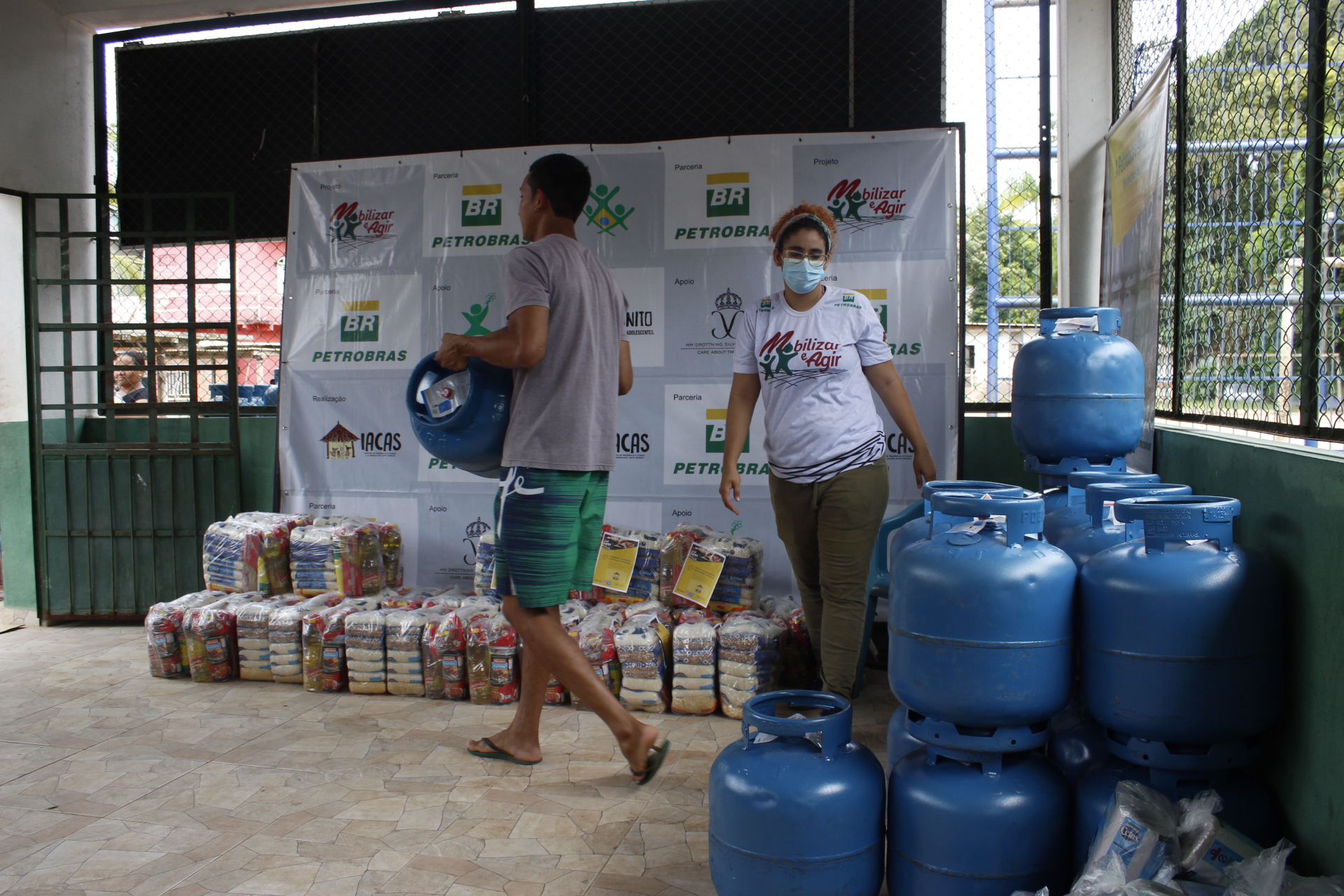 Recebimento do auxílio kit gás e cestas básicas no bairro Mauzinho e Vila da Felicidade. A ação faz parte do Projeto Mobilizar e Agir em parceria com a Petrobras.