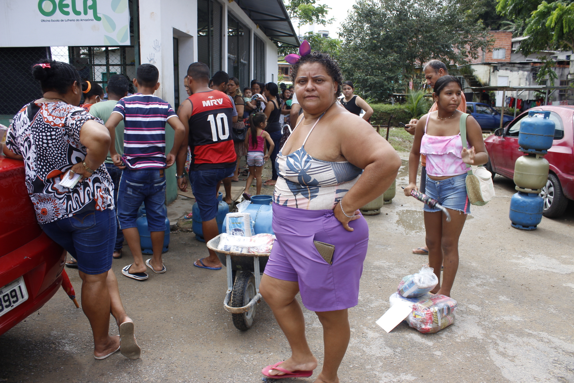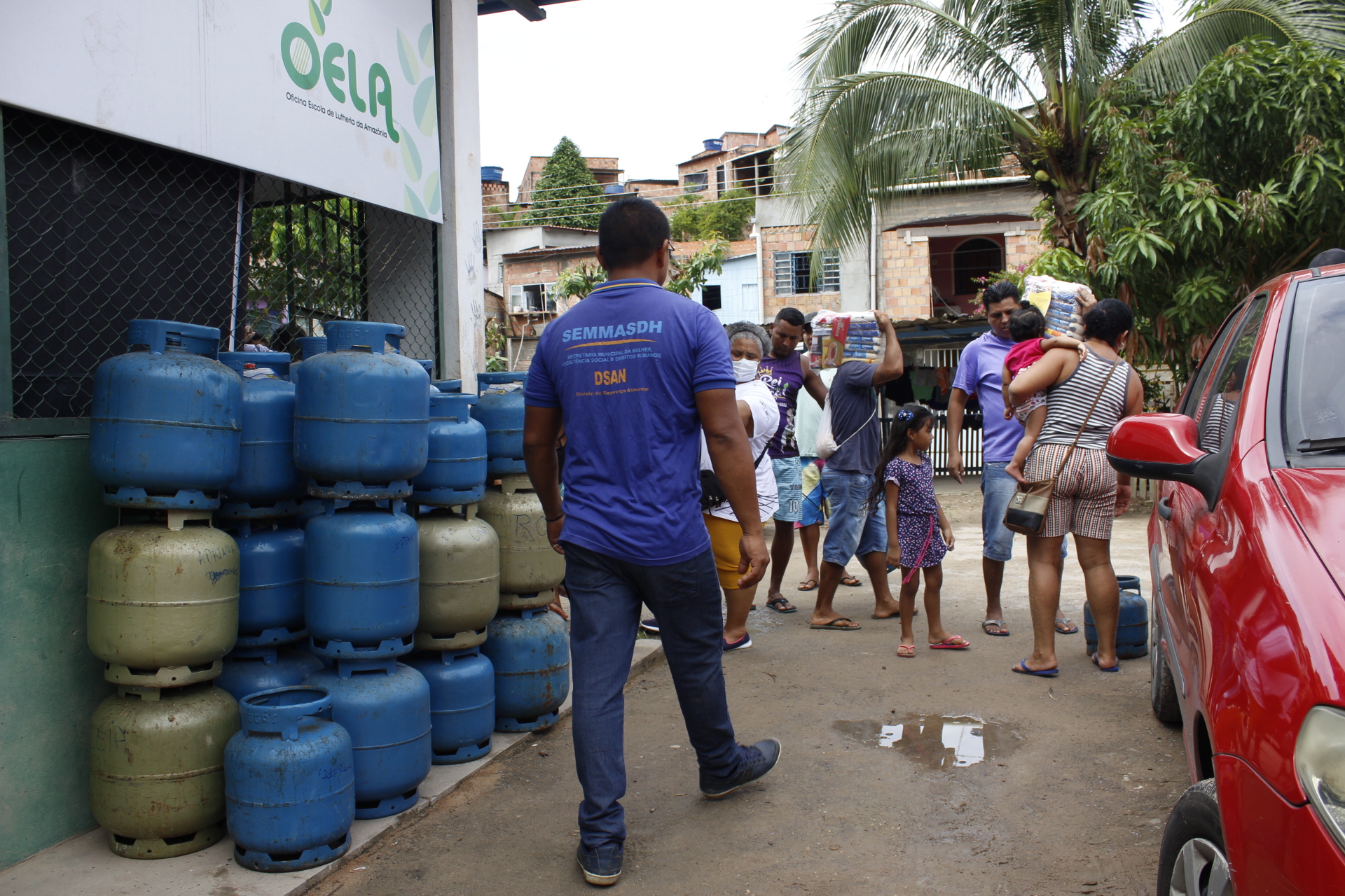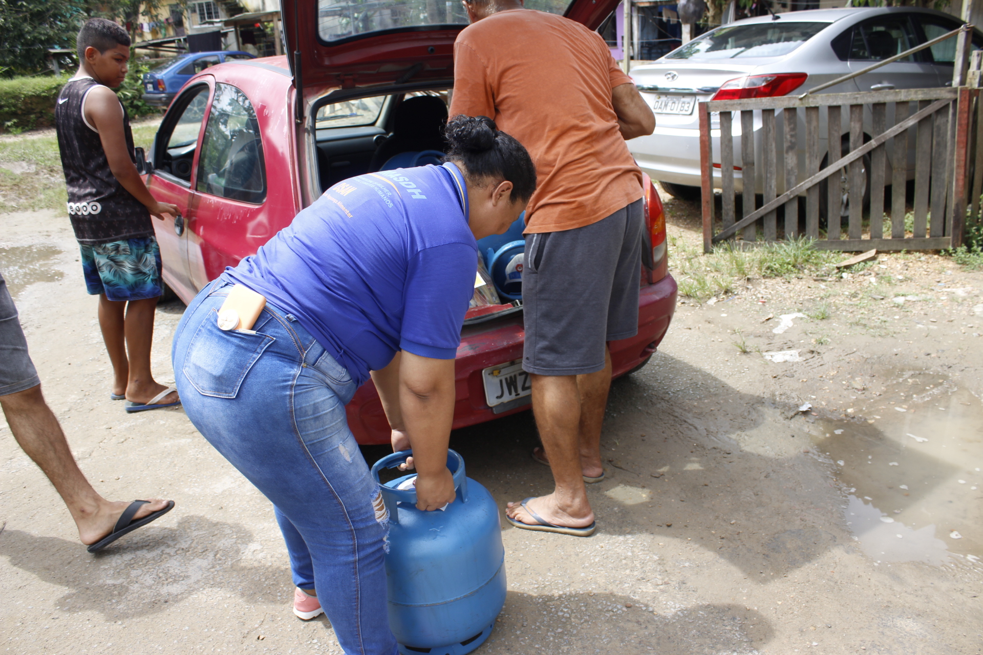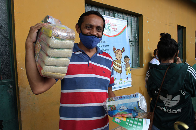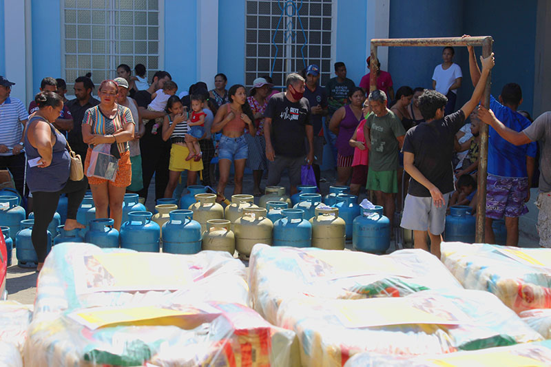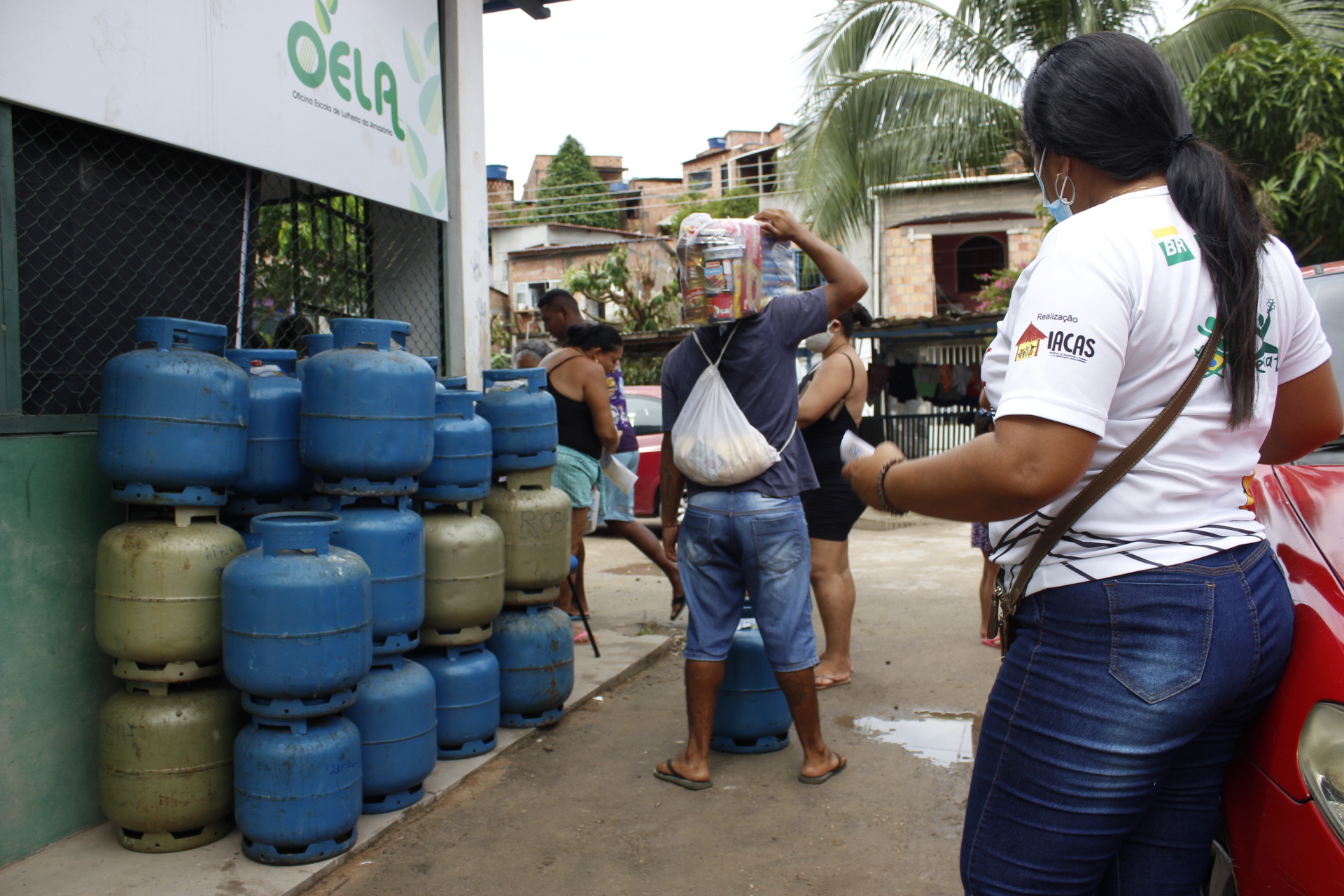Recebimento do auxílio kit gás e cestas básicas no bairro Mauzinho e Vila da Felicidade. A ação faz parte do Projeto Mobilizar e Agir em parceria com a Petrobras.