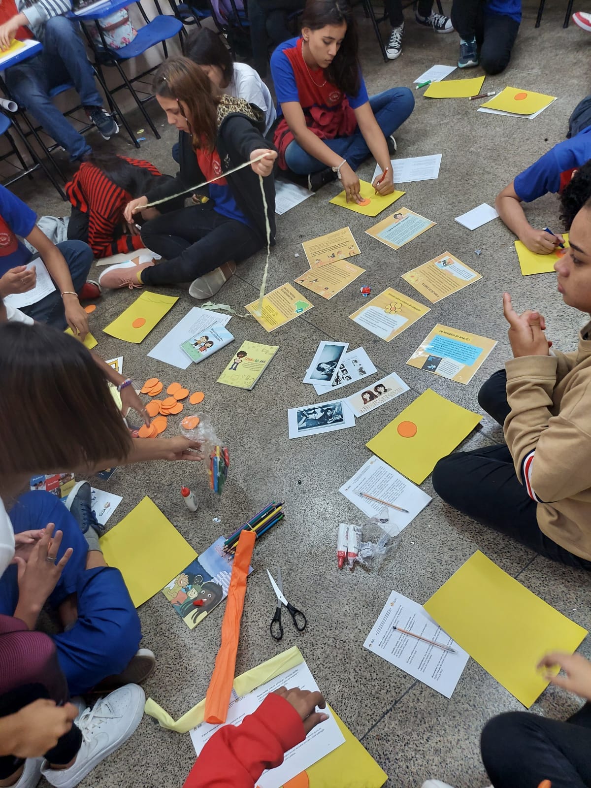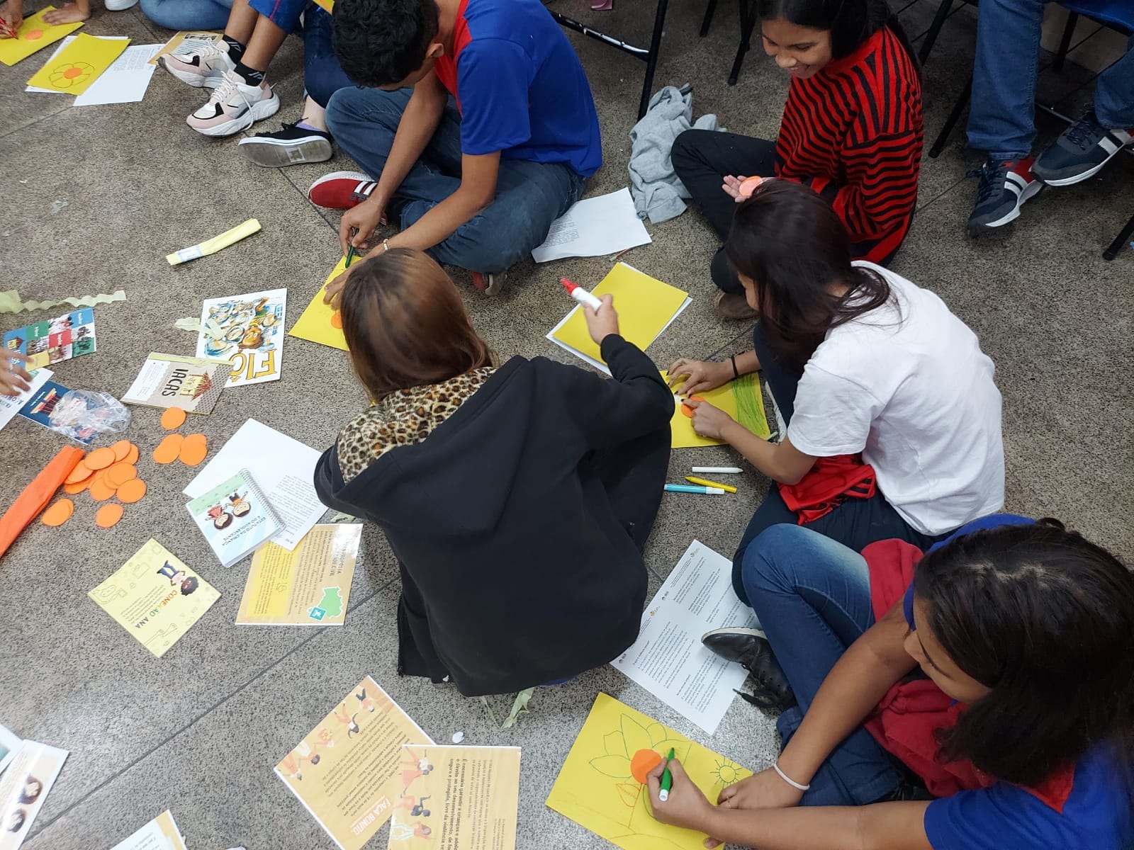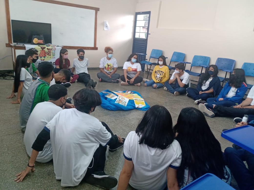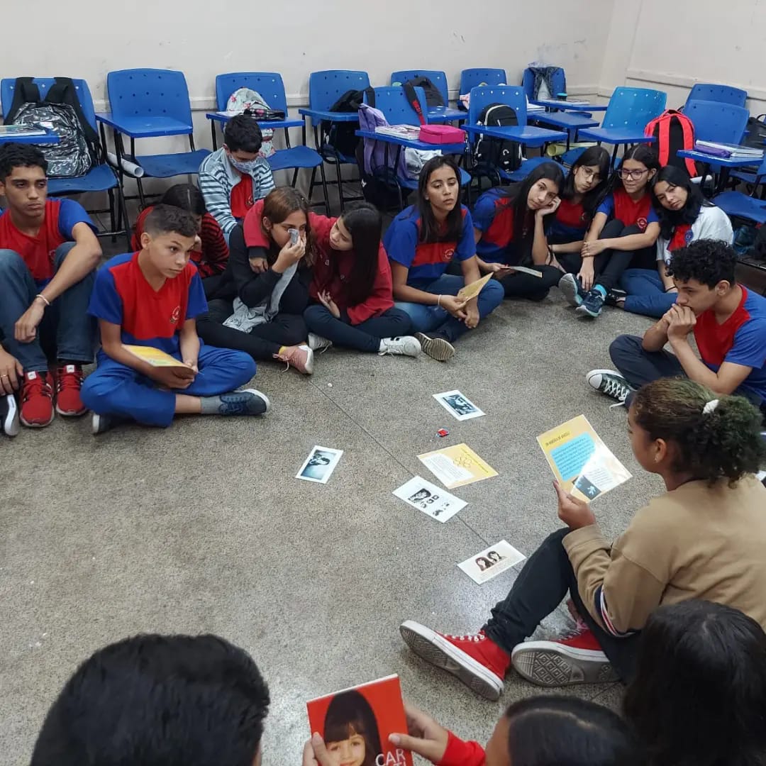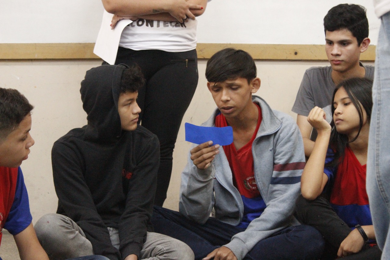 Registro da oficina educacional realizada na Escola Estadual Liberalina Weill, através da parceira com a Fundação Abrinq com o Projeto Fazendo Acontecer, cujo o tema alerta para as violências psicológicas na infância e adolescência.