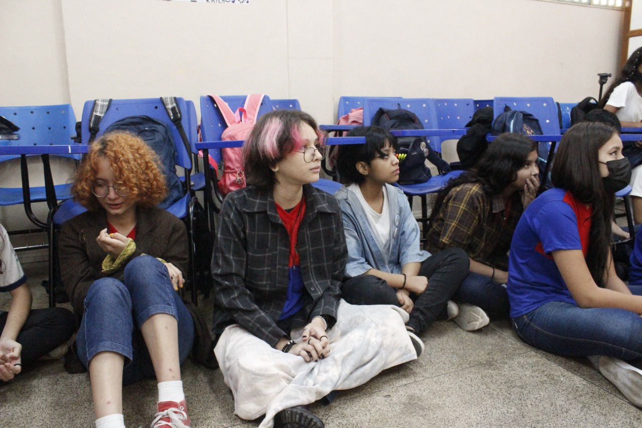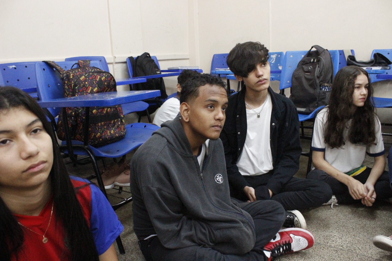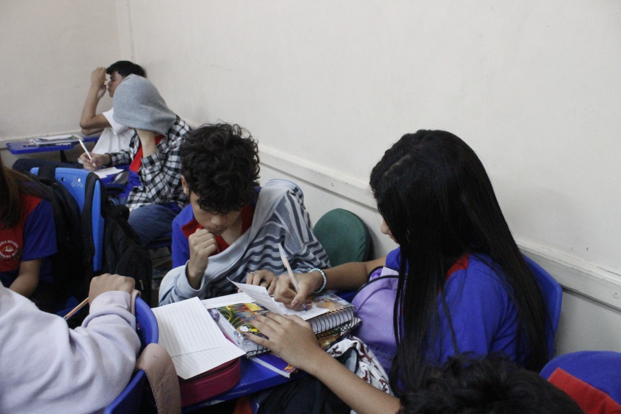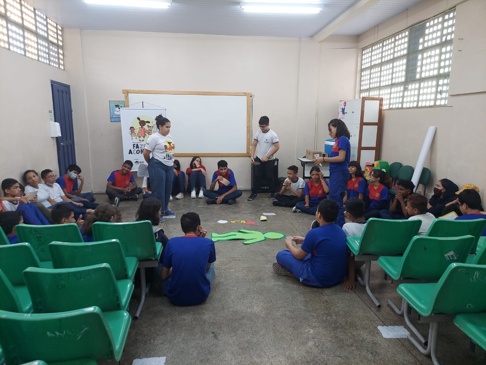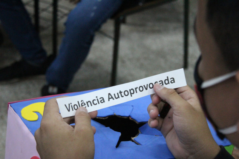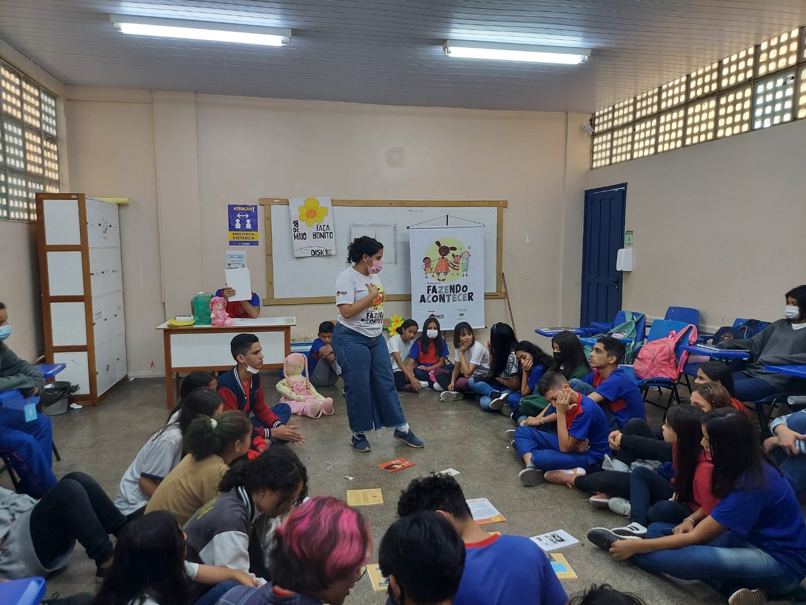 Registro da oficina educacional realizada na Escola Estadual Liberalina Weill, através da parceira com a Fundação Abrinq com o Projeto Fazendo Acontecer, cujo o tema alerta para as violências psicológicas na infância e adolescência.