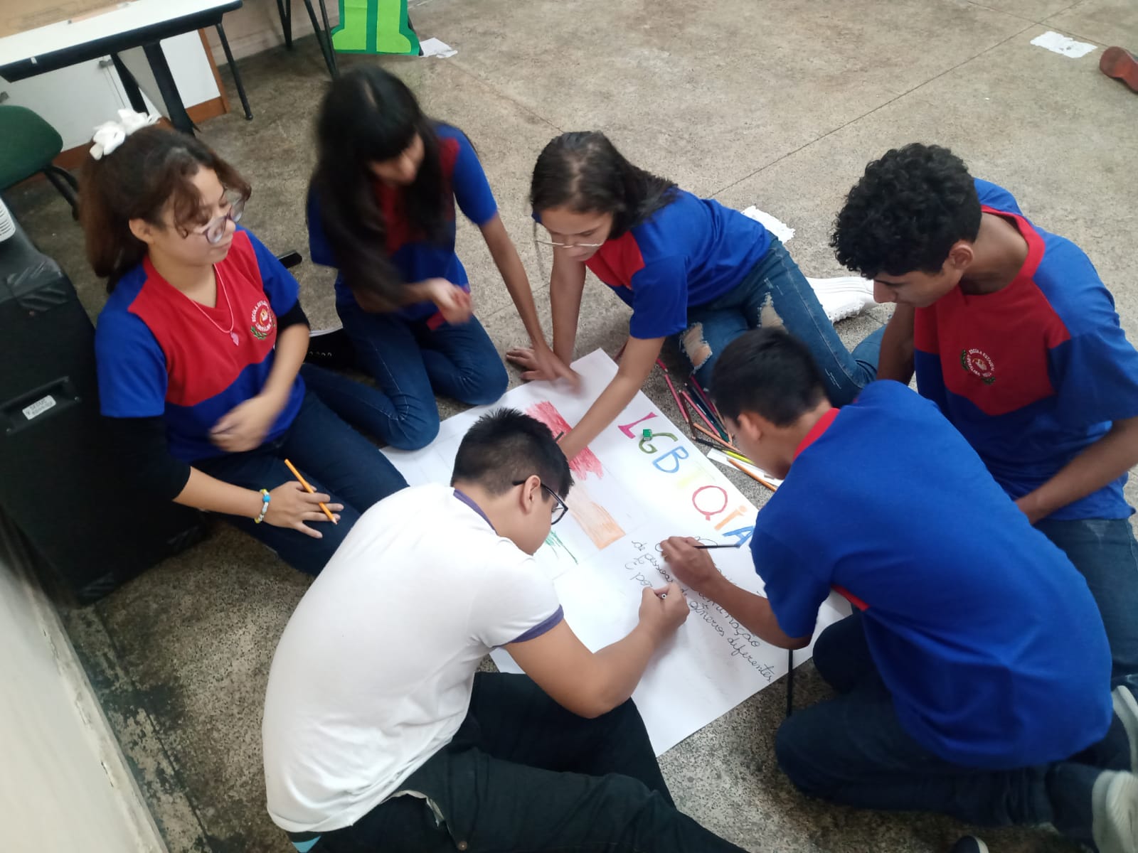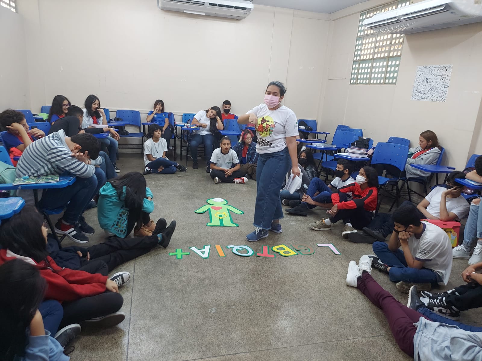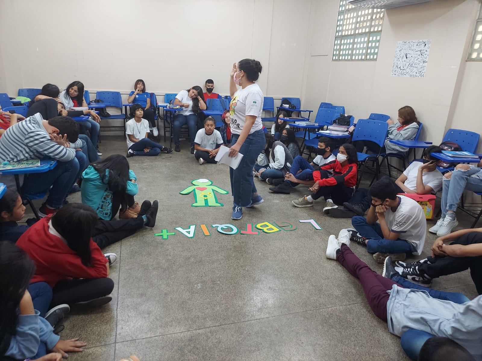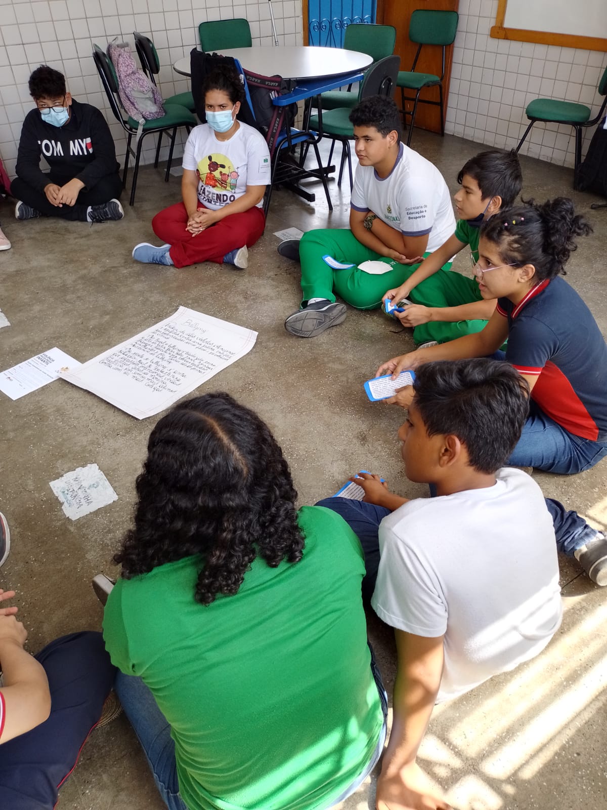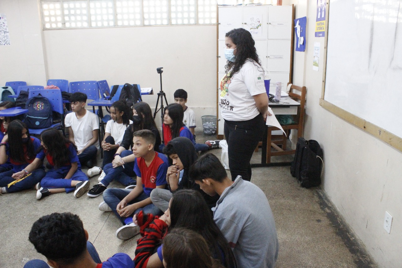 Registro da oficina educacional realizada na Escola Estadual Liberalina Weill, através da parceira com a Fundação Abrinq com o Projeto Fazendo Acontecer, cujo o tema alerta para as violências psicológicas na infância e adolescência.