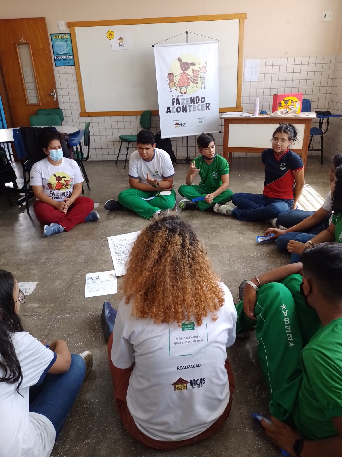 Entre os dias 08 a 10 de março de 2022, o IACAS através do Projeto Fazendo Acontecer, em parceria com a Fundação Abrinq, realizou oficinas para os adolescentes nas escolas estaduais do bairro Santo Antônio em Manaus. A ação tem como objetivo despertar a consciência social, sobre direitos e deveres, além de incentivar o aspecto cultural nestes adolescentes.