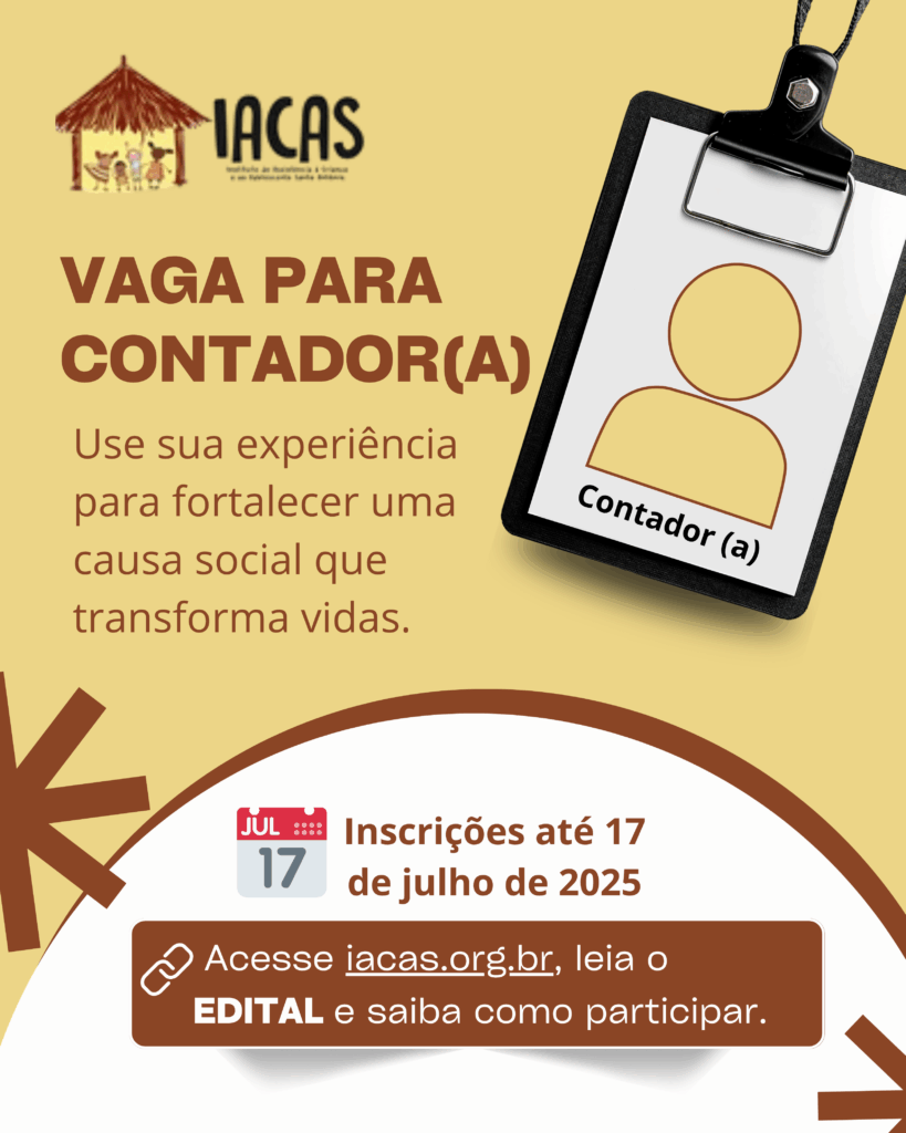 A oportunidade é voltada a profissionais com experiência na área contábil e alinhamento com a missão institucional do IACAS, que atua na defesa dos direitos de crianças e adolescentes na Amazônia.