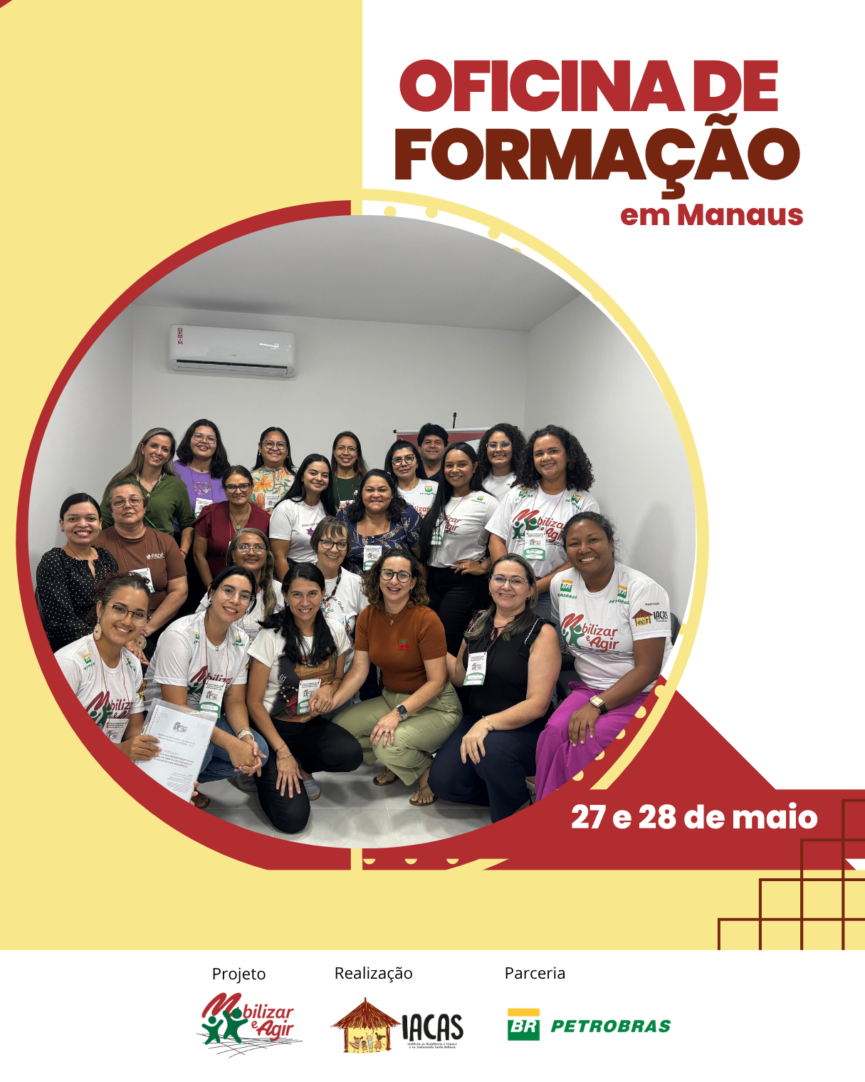 Manaus recebeu, nos dias 27 e 28 de maio de 2025, a primeira etapa da Oficina de Formação do Projeto Mobilizar e Agir, promovida pelo Instituto de Assistência à Criança e ao Adolescente Santo Antônio (IACAS), em parceria com a Petrobras por meio do Programa Petrobras Socioambiental.